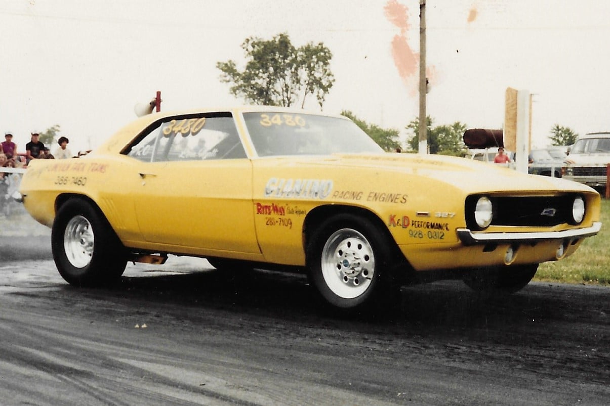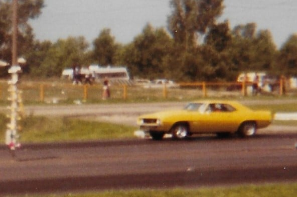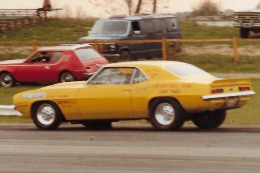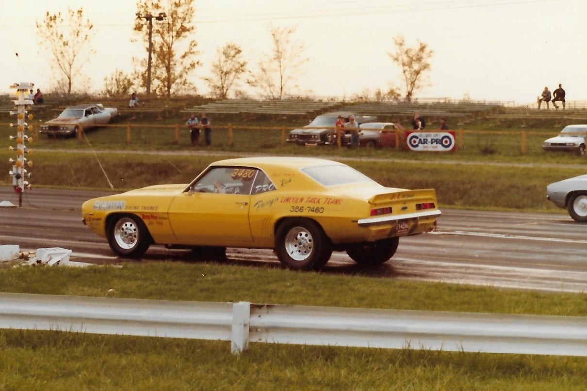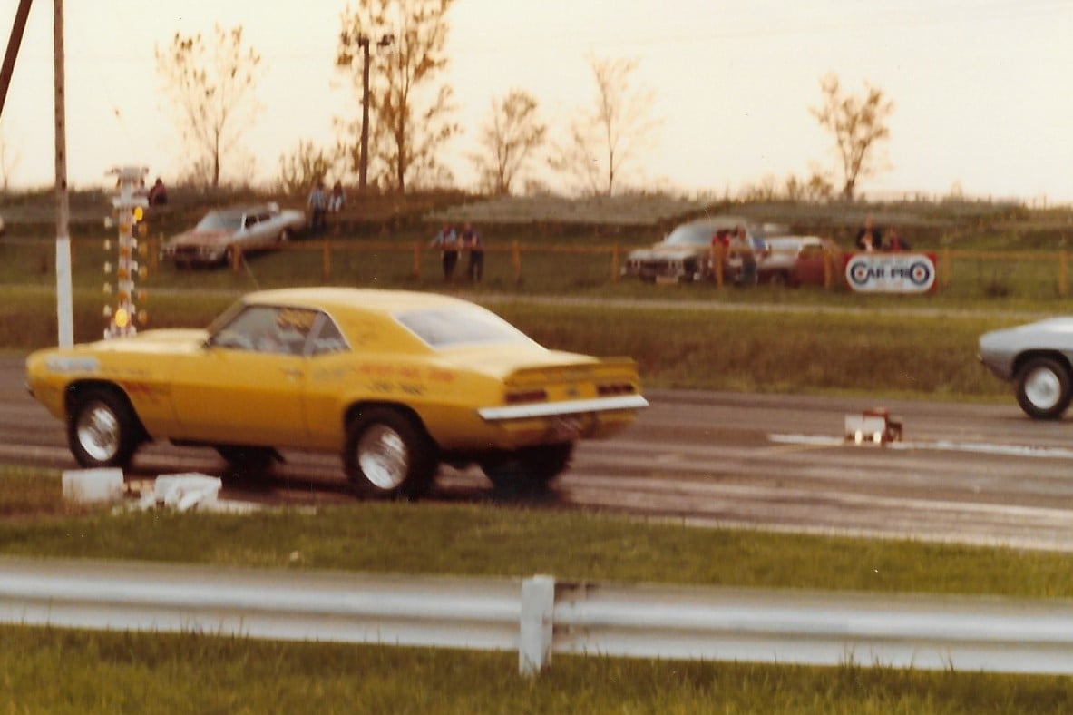 Perry raced his 69 Yellow Camaro at his home track Detroit Dragway, but also raced at Milan Dragway.