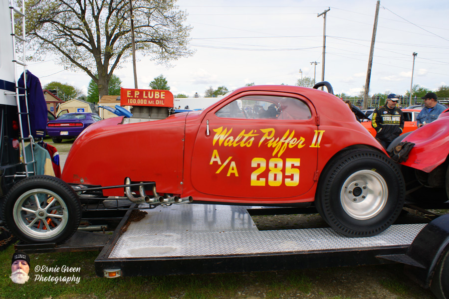 In 1961, the car’s top was chopped, and it was dubbed Walt’s Puffer II It routinely turned in passes with 10-second e.t.s and speeds of 150 mph (240 km/h).[1] It again lost to the Ratican-Jackson-Stearns Topolino at the 1961 Nationals